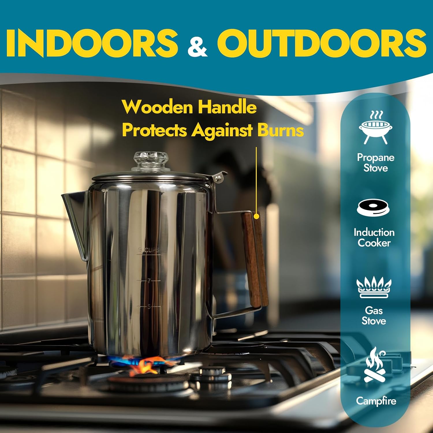 - PERFECT FOR OUTDOORS & EMERGENCIES: Our large capacity stovetop coffee maker delivers 9 cups of rich coffee without electricity. Ideal for camping trips or power outages during hurricanes without the hassle of repeated boiling. A must-have for outdoor lovers and prepared households alike, ensuring you never go without your coffee fix