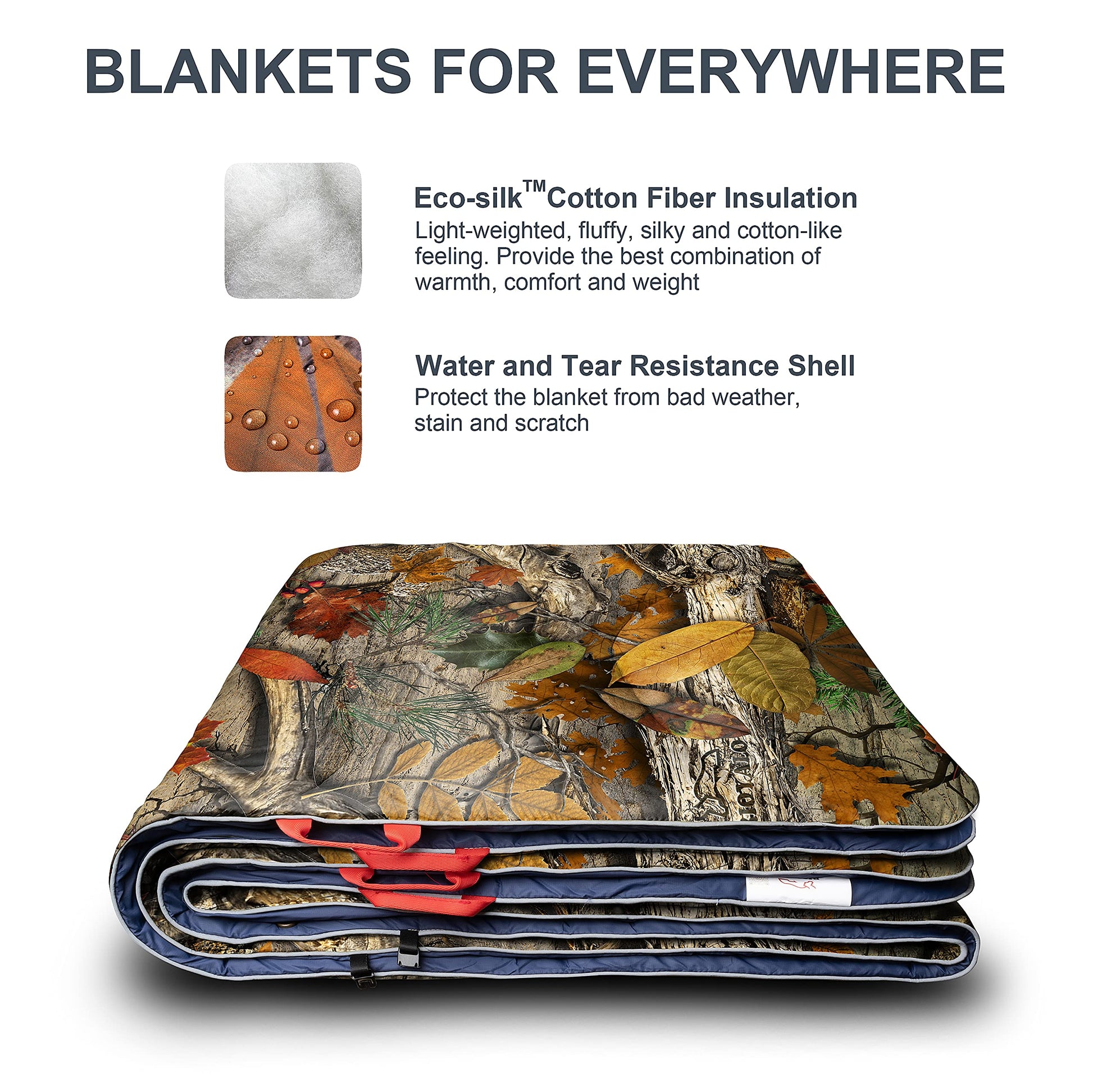 ECOSILK Outdoor Blanket Waterproof | XL Puffy Camping Blanket for Hiking Backpacking | Lightweight Packable Travel Cars Blanket w. Stuff Sack for Picnic Festival |55 X 79 in| Forest Camo…