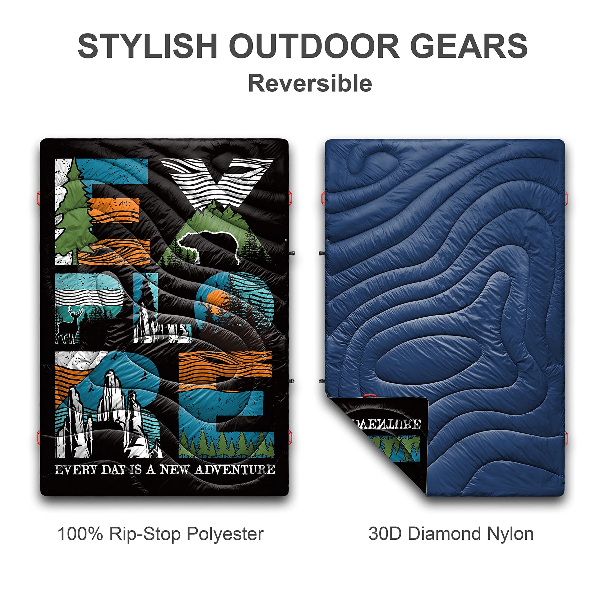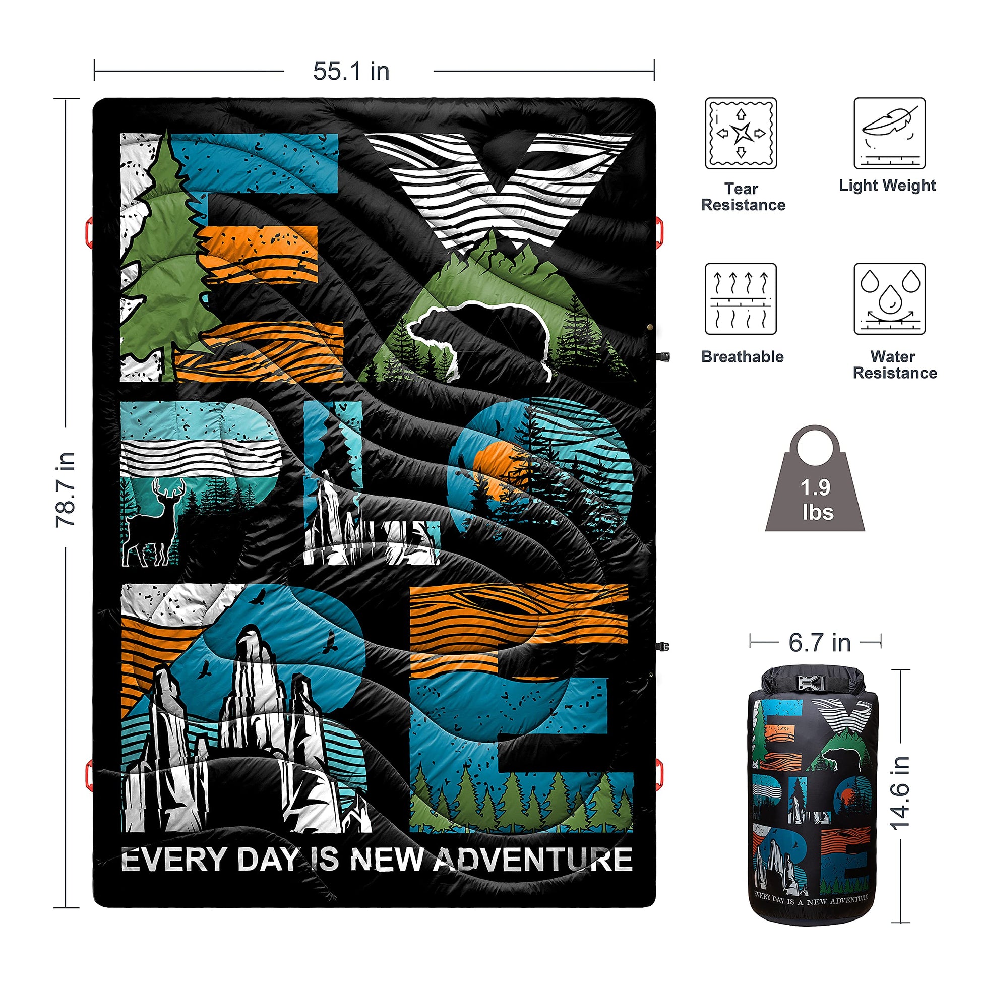 - 💫 BLANKETS FOR EVERYWHERE 💫 With a ripstop shell, and a warm insulation, you can bring this puffy warm compact blanket quilt to anywhere like outdoor concerts, festivals, beach, picnics, traveling and hiking, backpacking, camping, fishing and hunting adventures.