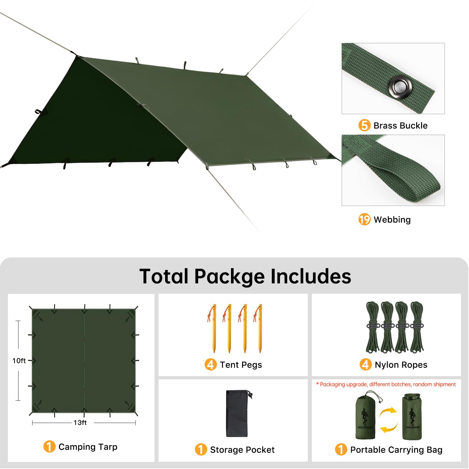 - OUTSTANDING QUALITY - FREE SOLDIER Waterproof Portable Tarp apply to heavy duty operating, tactical, military, shelter, hunting, fishing, backpacking, traveling, hiking, working, camping and other outdoor adventure etc. Your satisfaction and happy is our pursuit