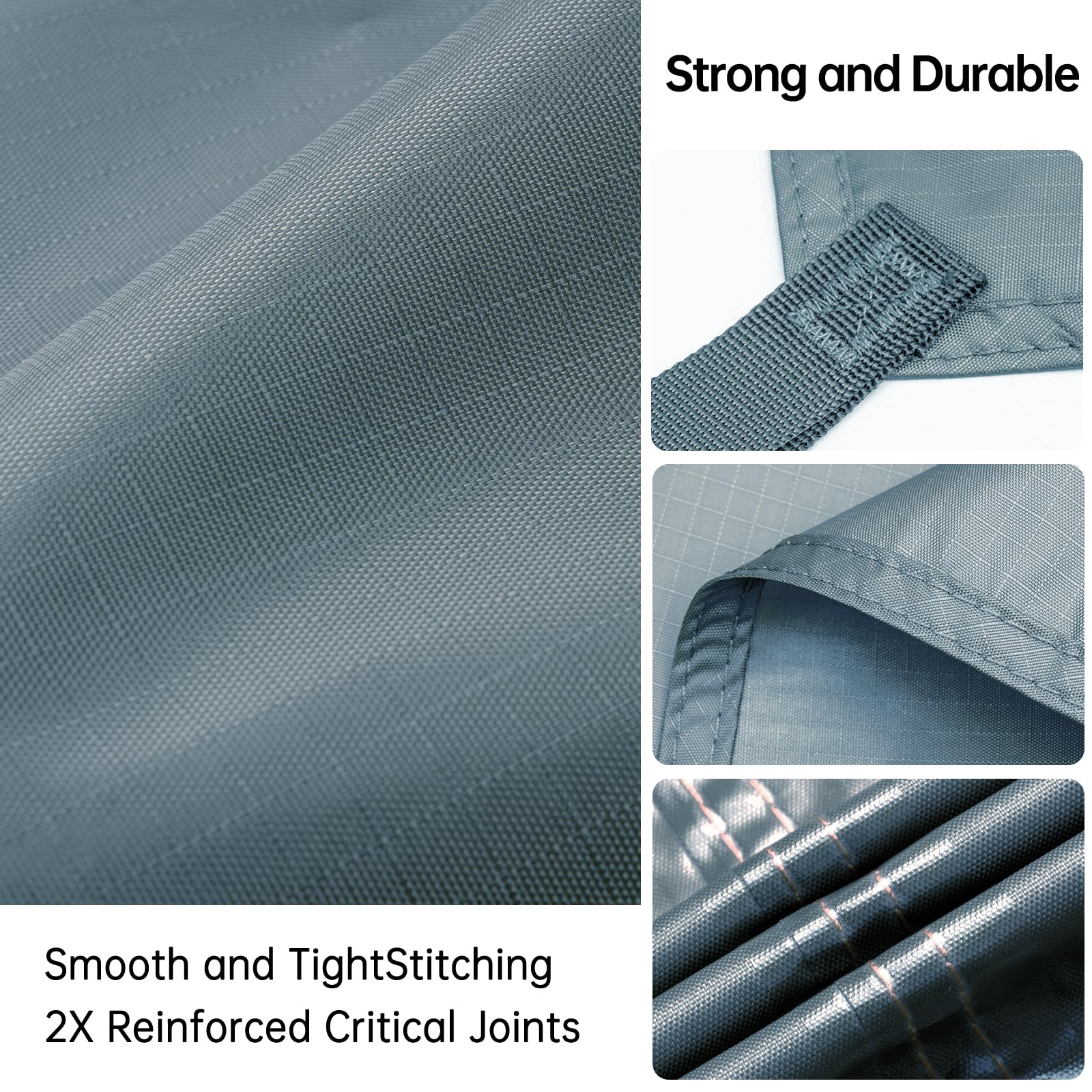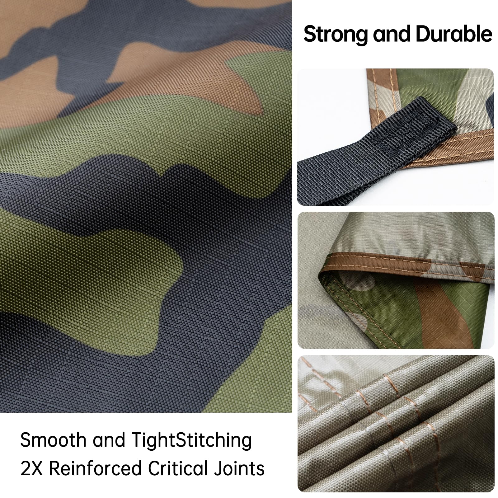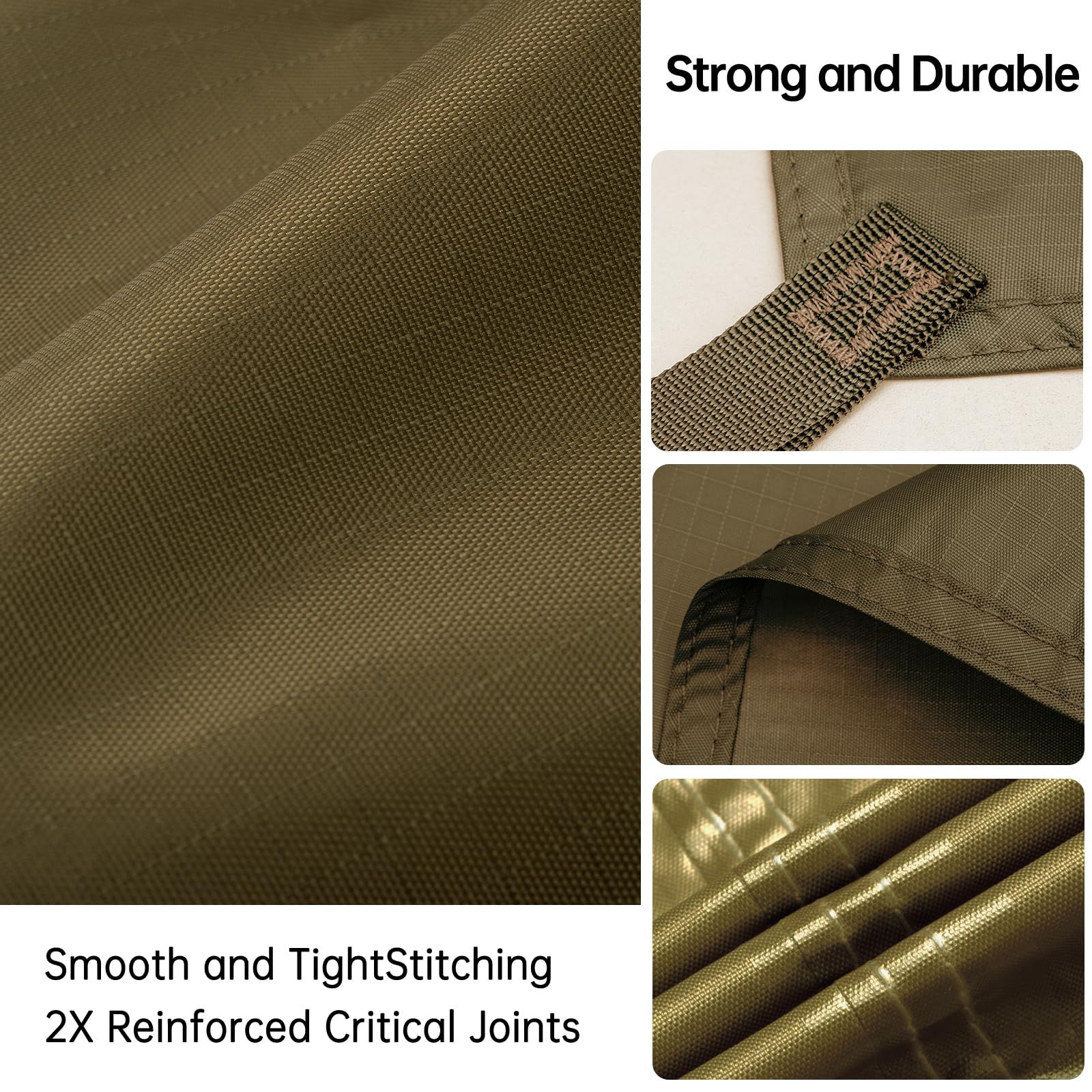 - HEAVY DUTY & PORTABLE - Large size in 118" × 126" when expended, enough for 2 persons. It's convenient to folded and put into a lightweight stuff sack when not in use, essential tarp gear for your outdoor travel. Net weight: 1.2kg(42oz), not super light but heavy duty, you can consider of the thickness of the fabric, excellent quality, value for money price
