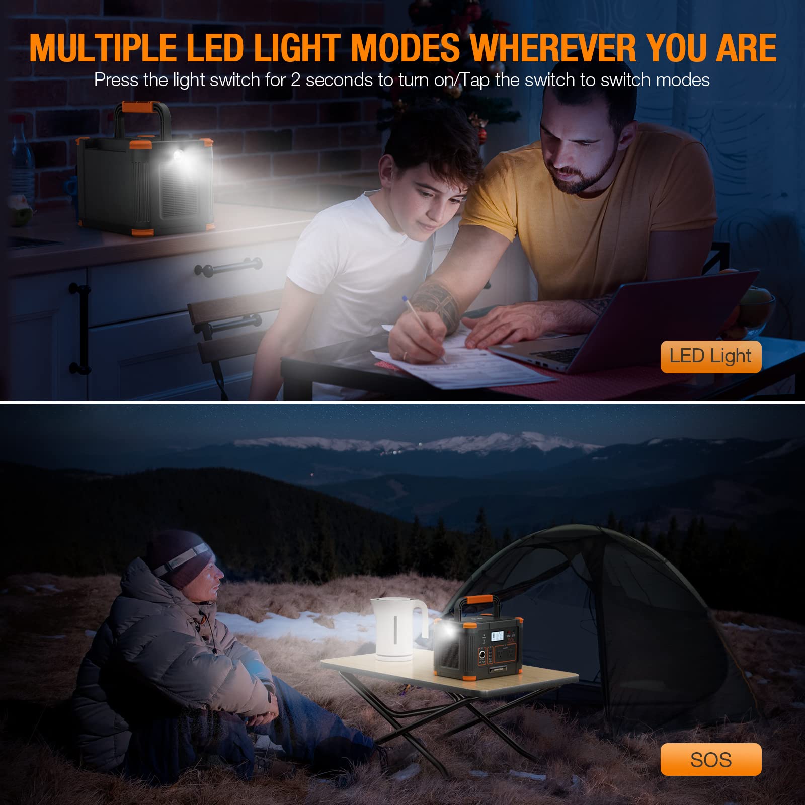 - 【230.88Wh Capacity & 300W Stable Output】 300W continuous power (600W surge) with pure sine wave technology safely powers most household and outdoor devices: laptops, phones, tablets, lights, fans, CPAP machines, mini-fridges, projectors, and cameras (rated power <300W). Compact, lightweight design with a built-in handle for easy transport—ideal for camping, road trips, RV adventures, or home emergency backup.