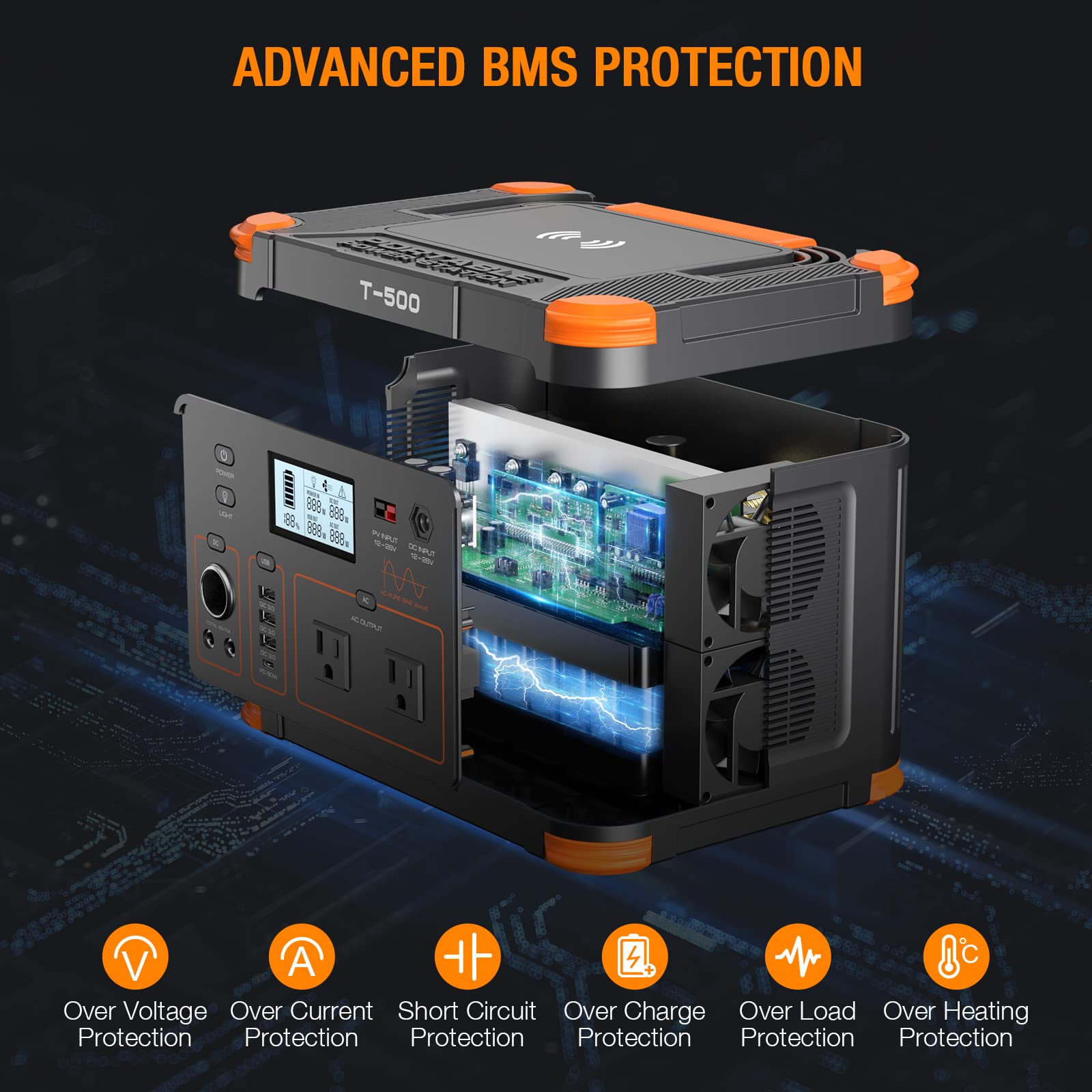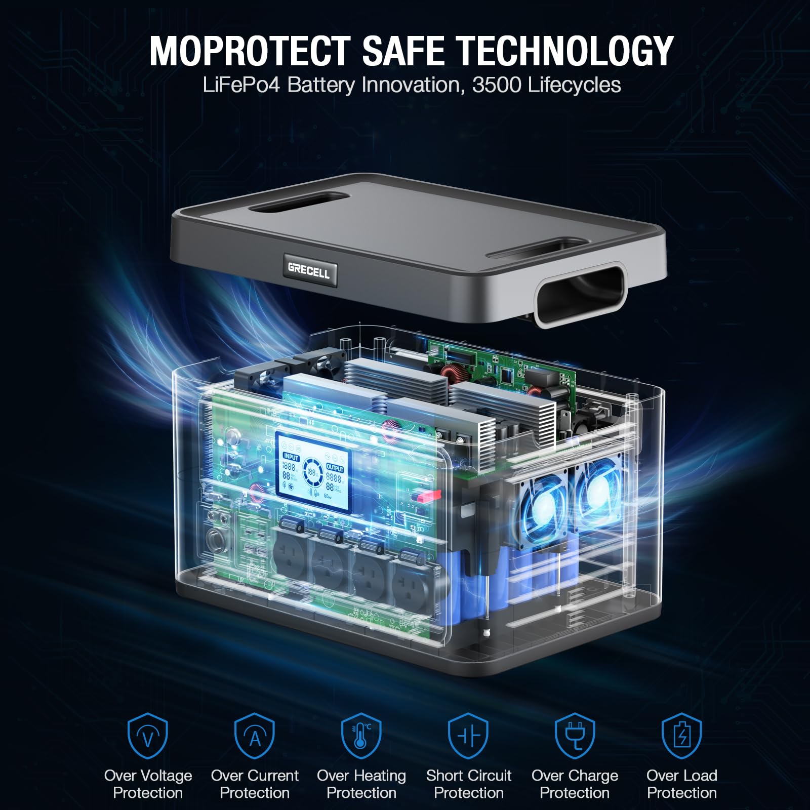 - 【Enhanced Safety with Advanced BMS】 We prioritize quality lithium batteries to avoid risks—paired with an upgraded Battery Management System (BMS) that offers overload, overcharge (auto-shutoff when full), and short-circuit protection. Dual silent cooling fans work quietly to regulate temperature, ensuring safe, long-lasting performance in any environment.