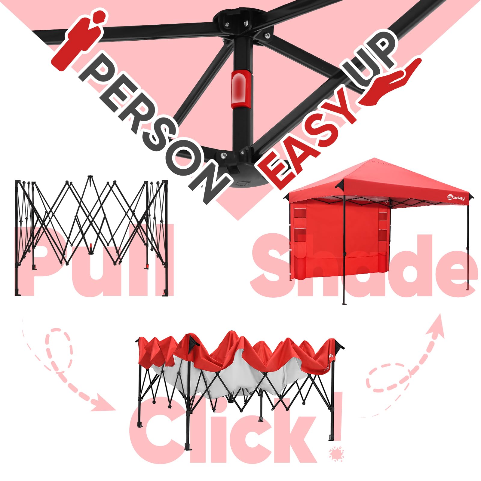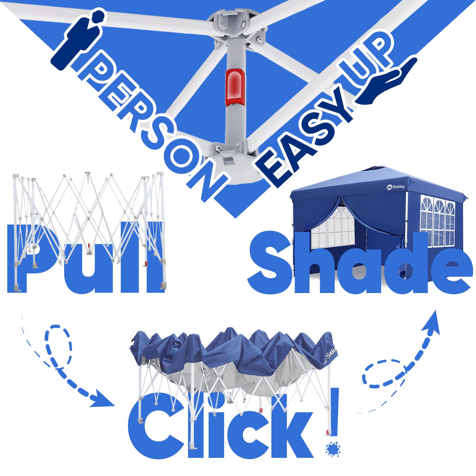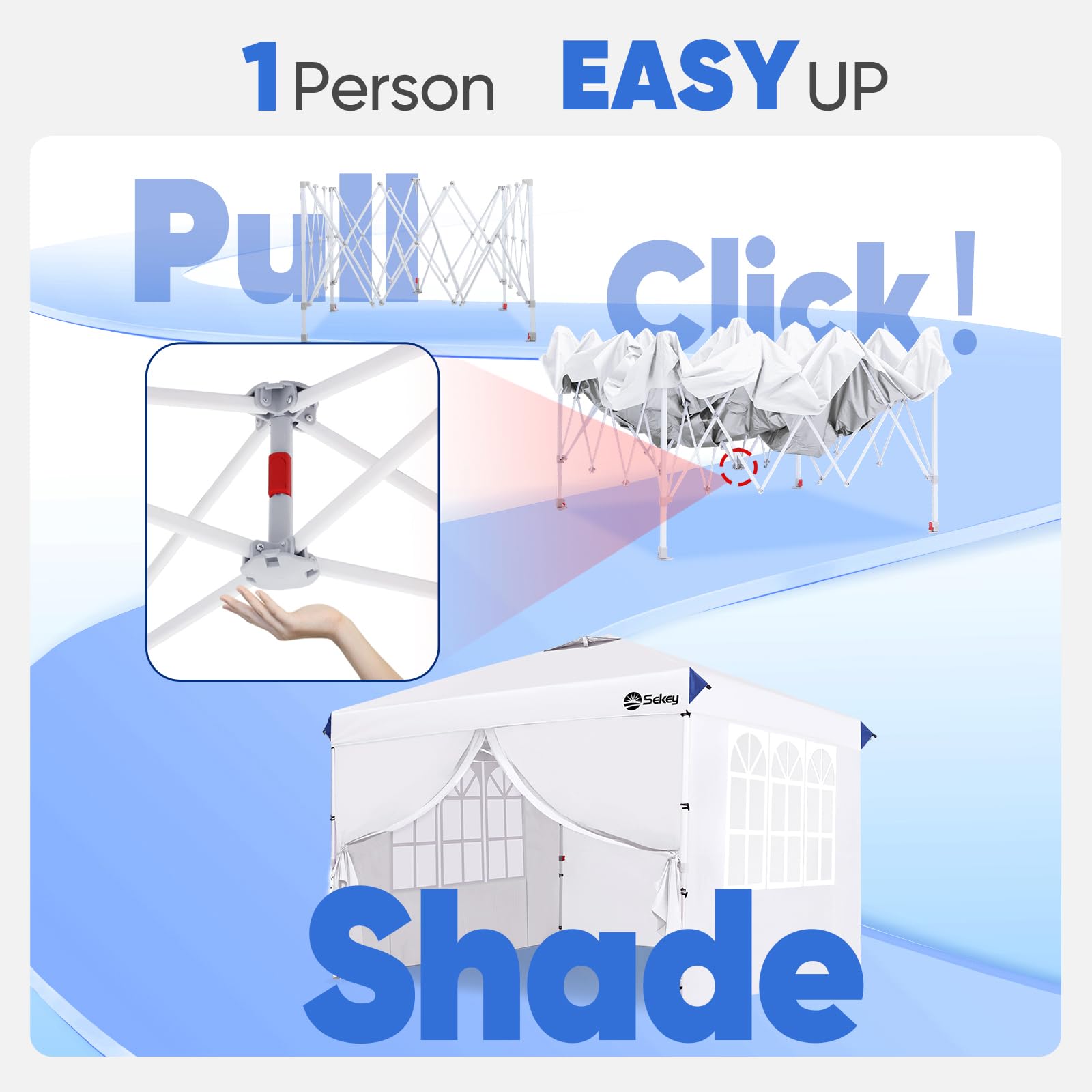 Sekey 10x10 Pop Up Canopy with 4 Sidewalls, One Push Setup Instant Outdoor Gazebo, Instant Easy Up Canopy with UPF50+ Top, 4 Weight Bags for Events, Beach, Patio, Camping