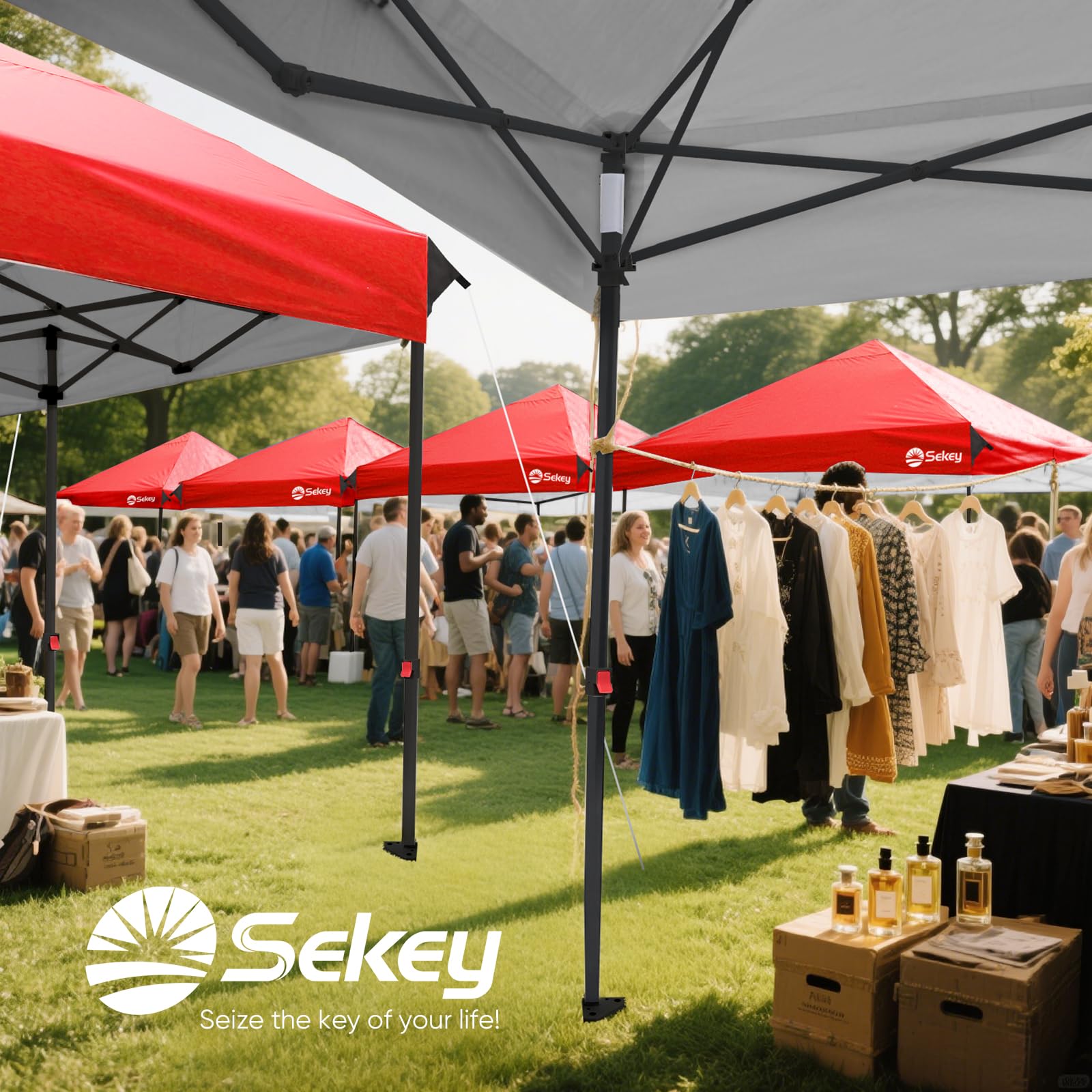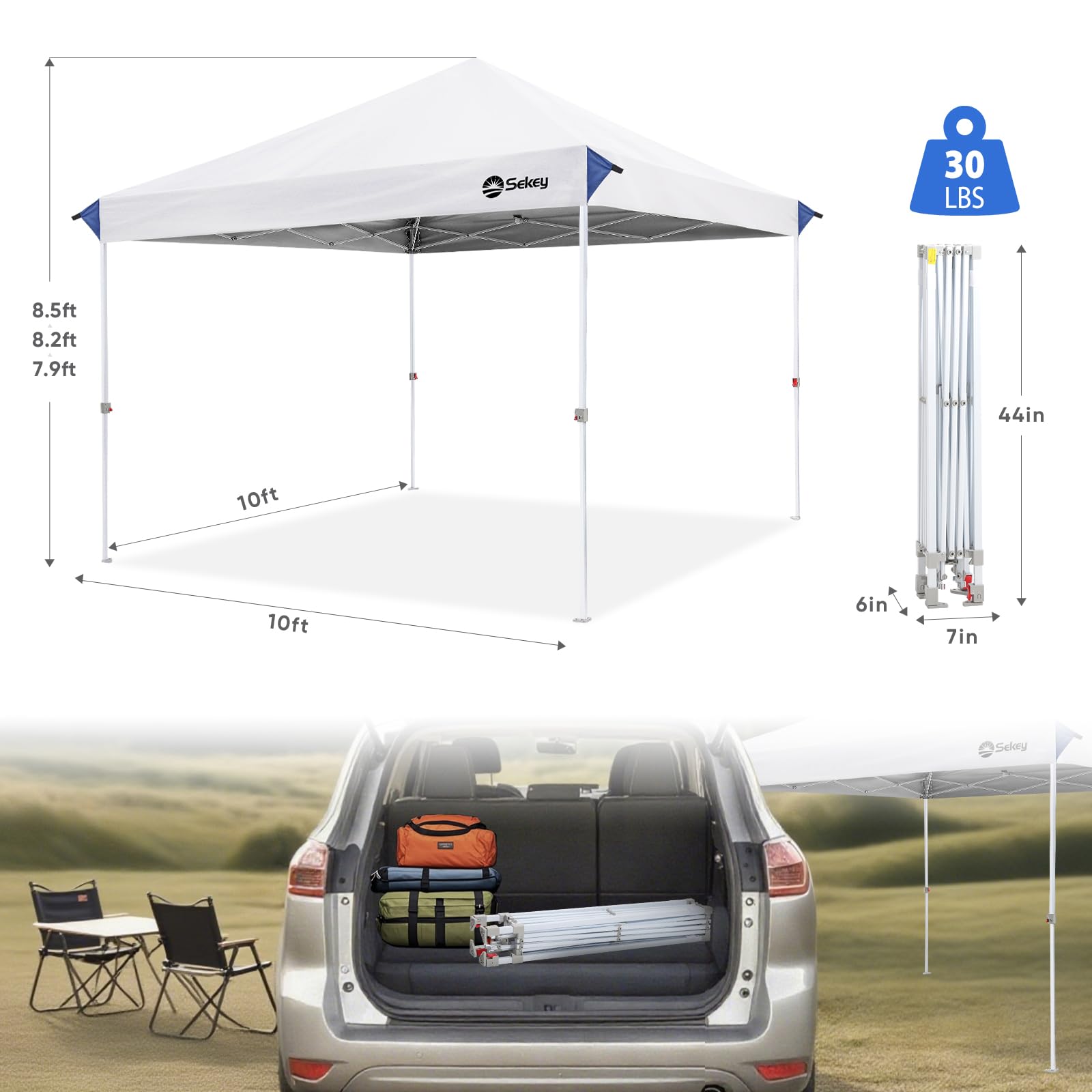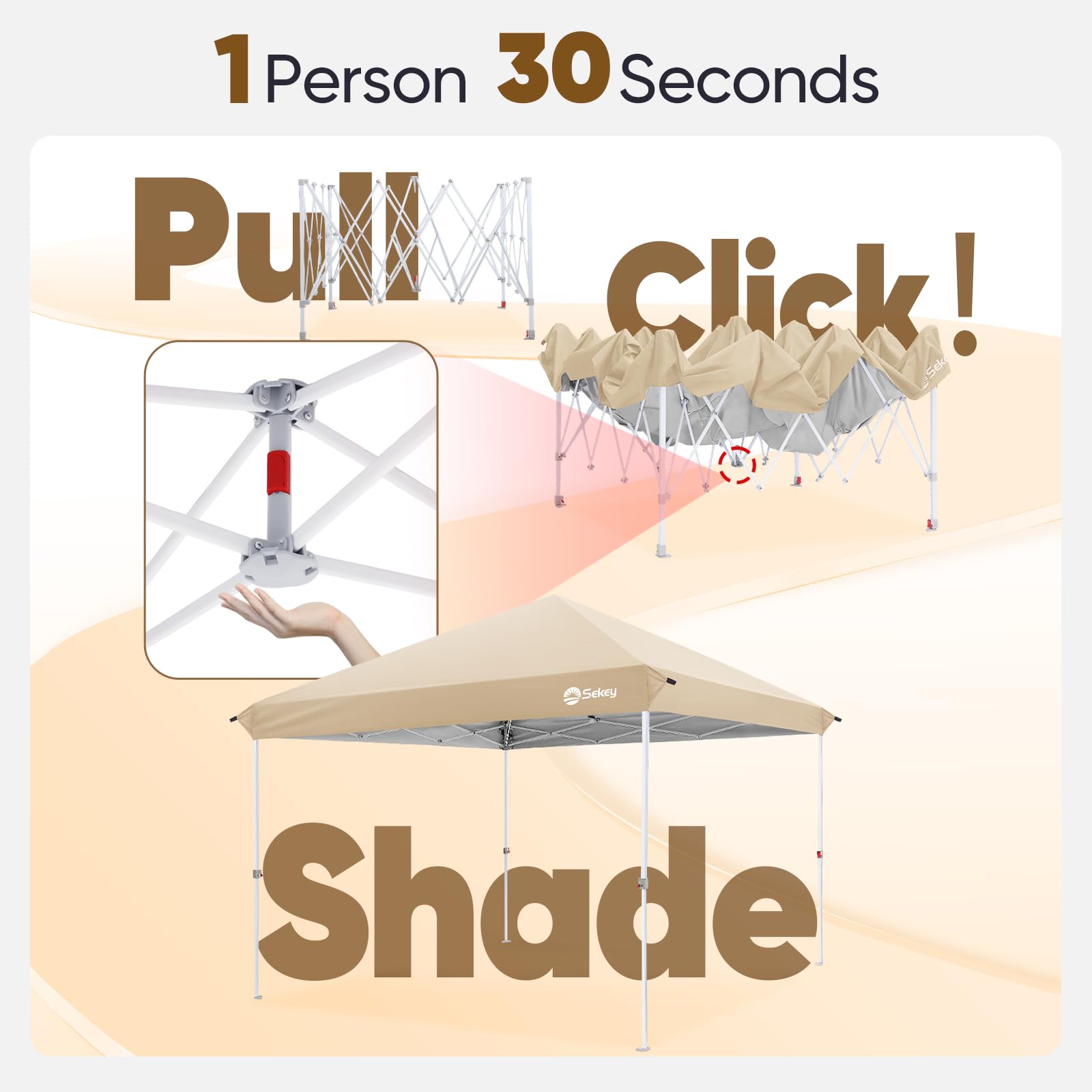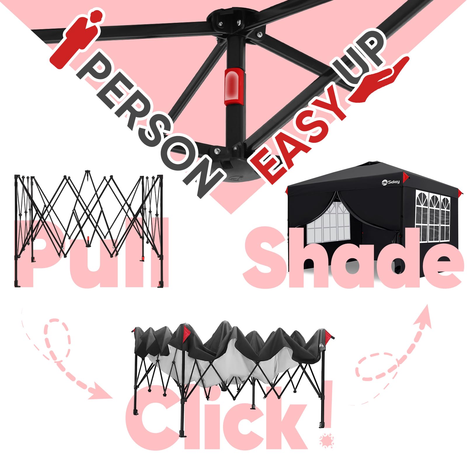 Sekey 10x10 Pop Up Canopy with 4 Sidewalls, One Push Setup Instant Outdoor Gazebo, Instant Easy Up Canopy with UPF50+ Top, 4 Weight Bags for Events, Beach, Patio, Camping