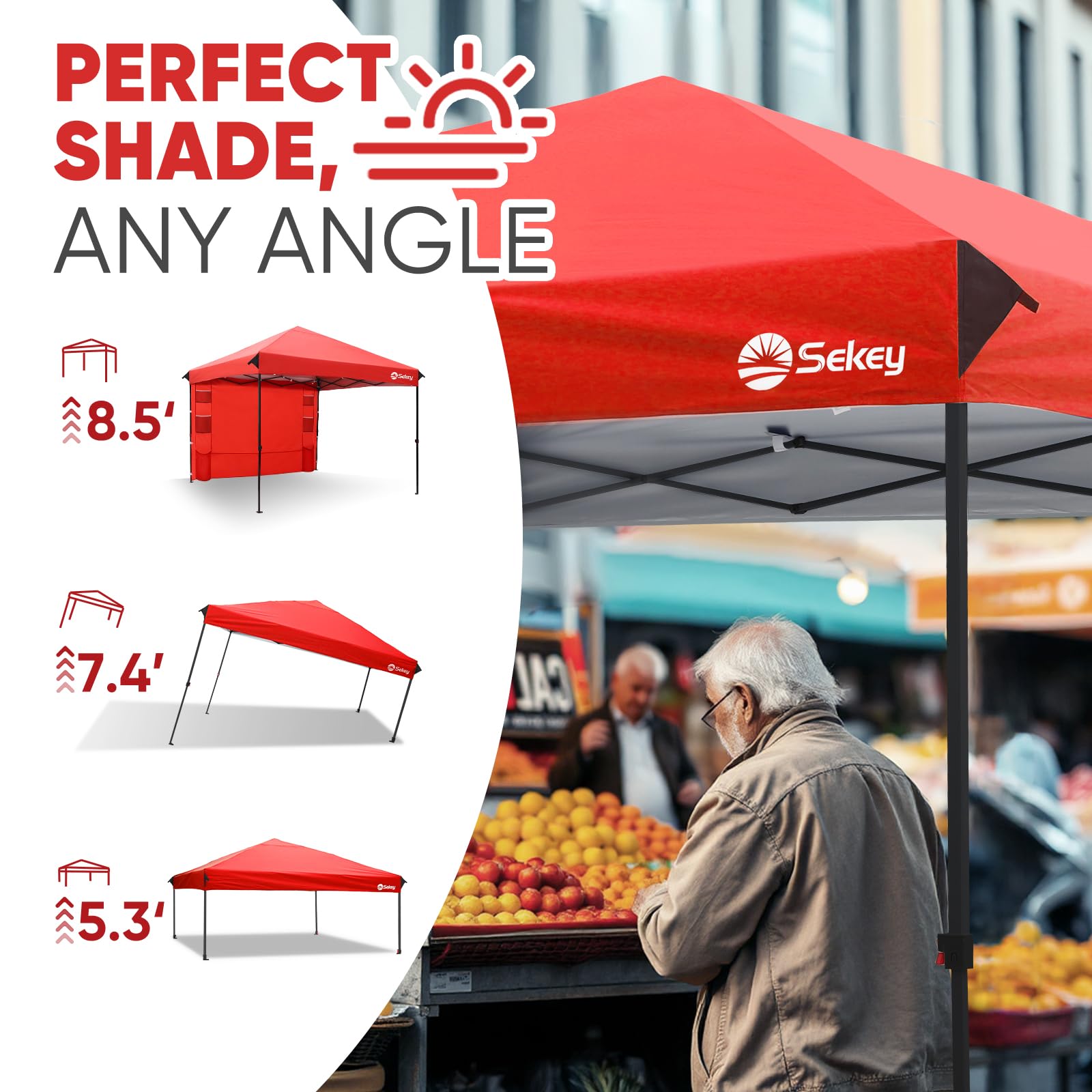 - ๐๐๐๐๐๐๐๐๐ ๐๐๐๐๐: ๐ญ๐ฌ๐ฌ ๐๐พ ๐ณ๐ of coverage with 3 height setting shade canopyโideal for beach, market, party, campsite, wedding, music festivals, and commercial events.