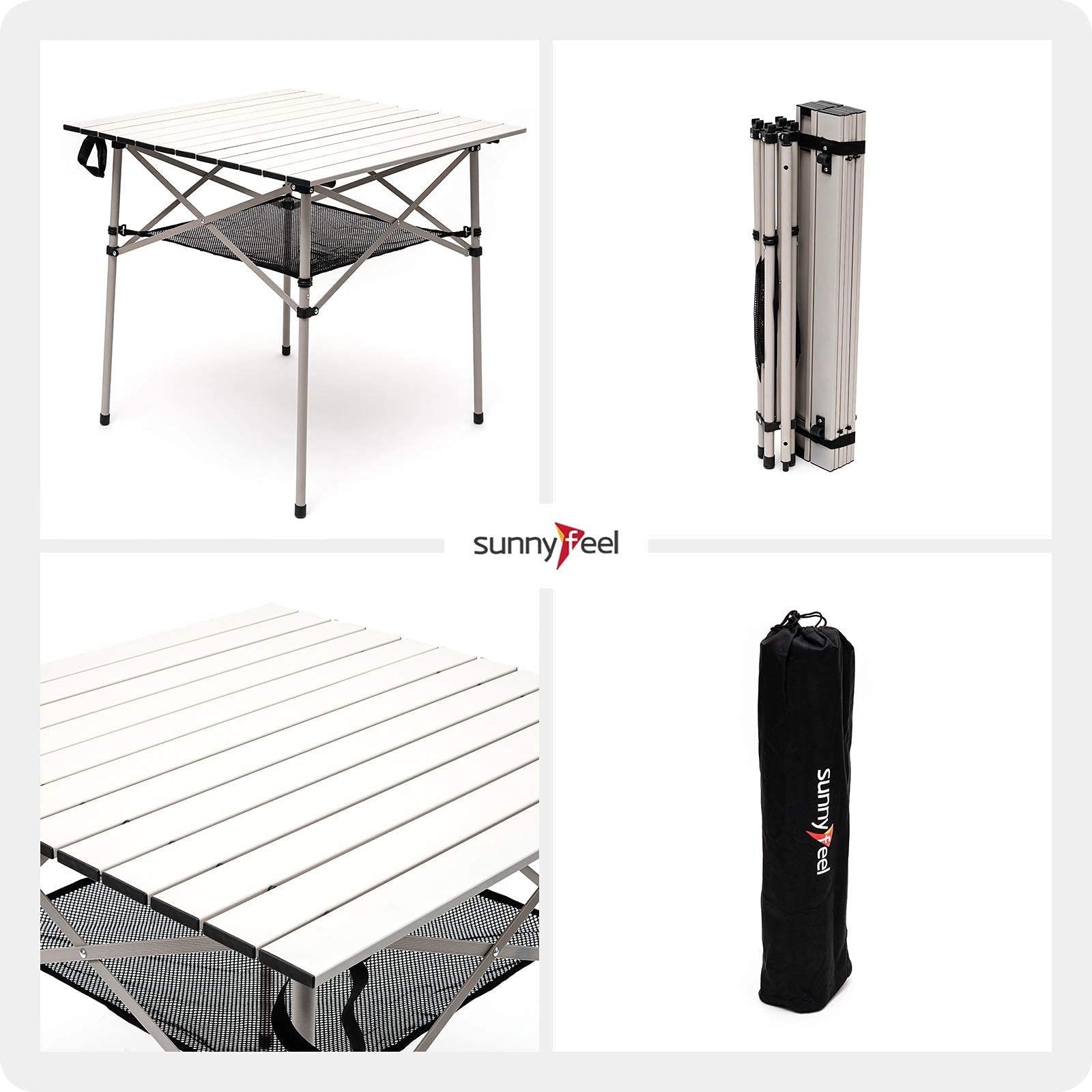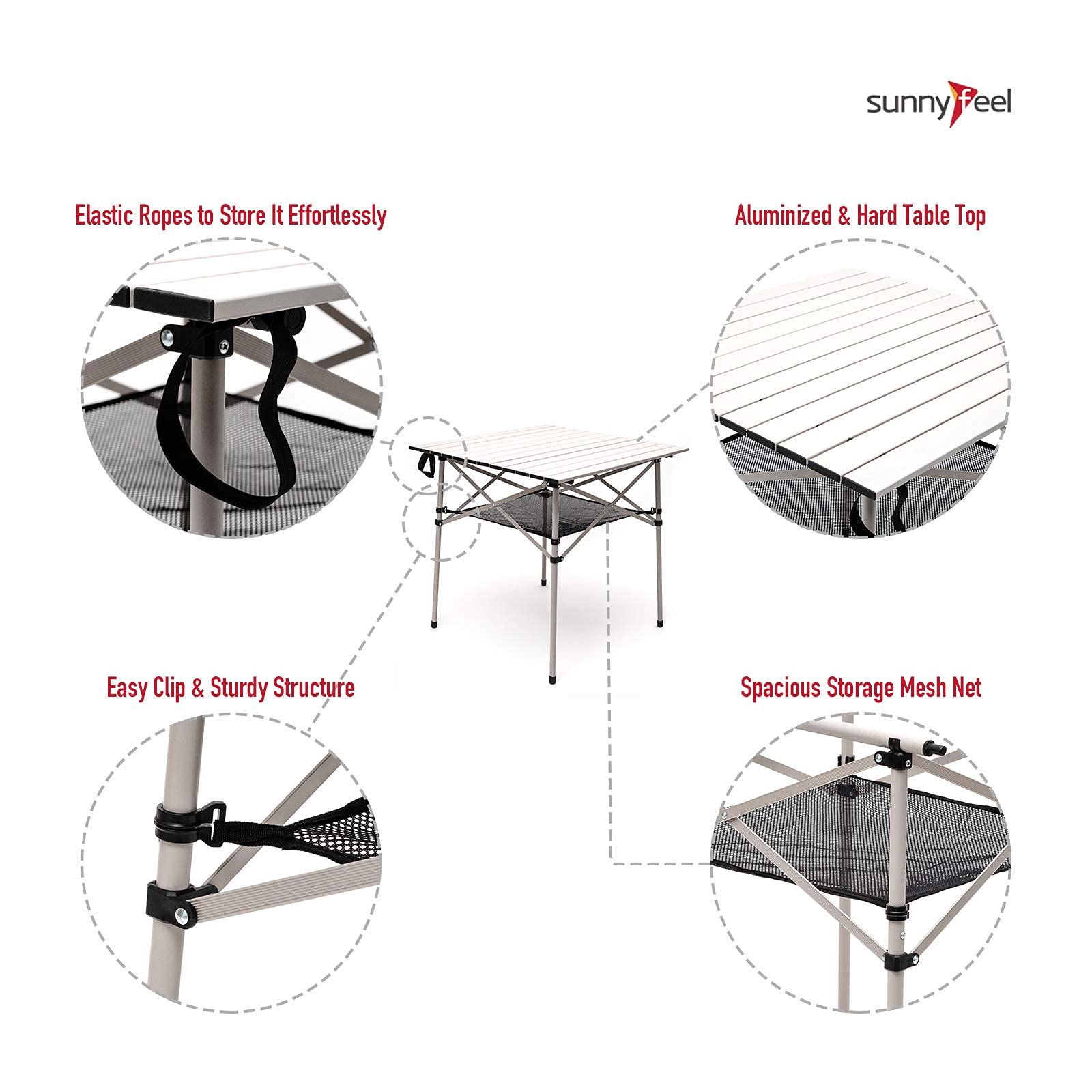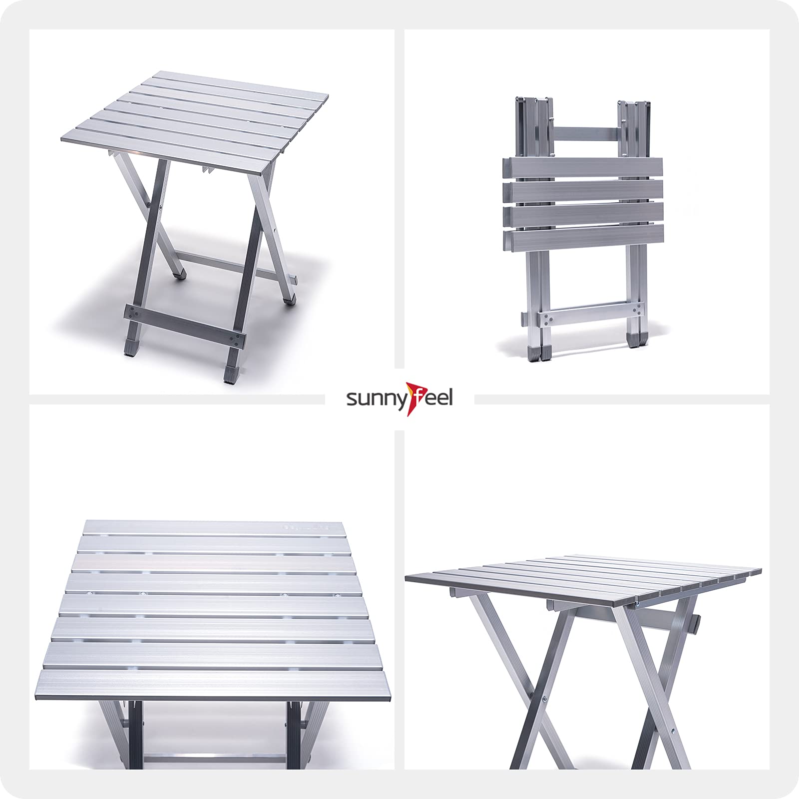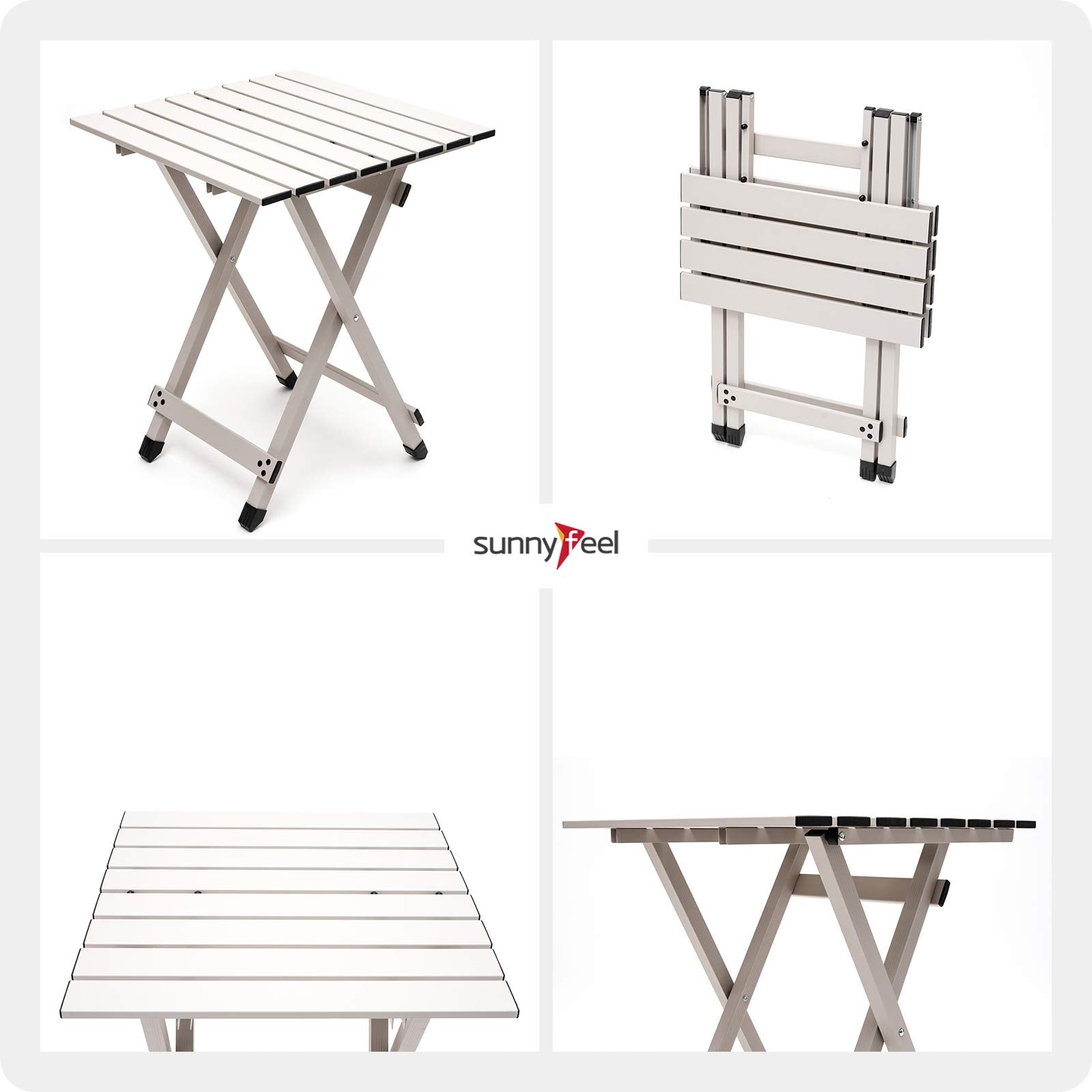 SUNNYFEEL Folding Camping Table - Lightweight Aluminum Portable Picnic Table, 18.5x18.5x24.5 Inch for Cooking, Beach, Hiking, Travel, Fishing, BBQ, Indoor Outdoor Small Foldable Camp Tables