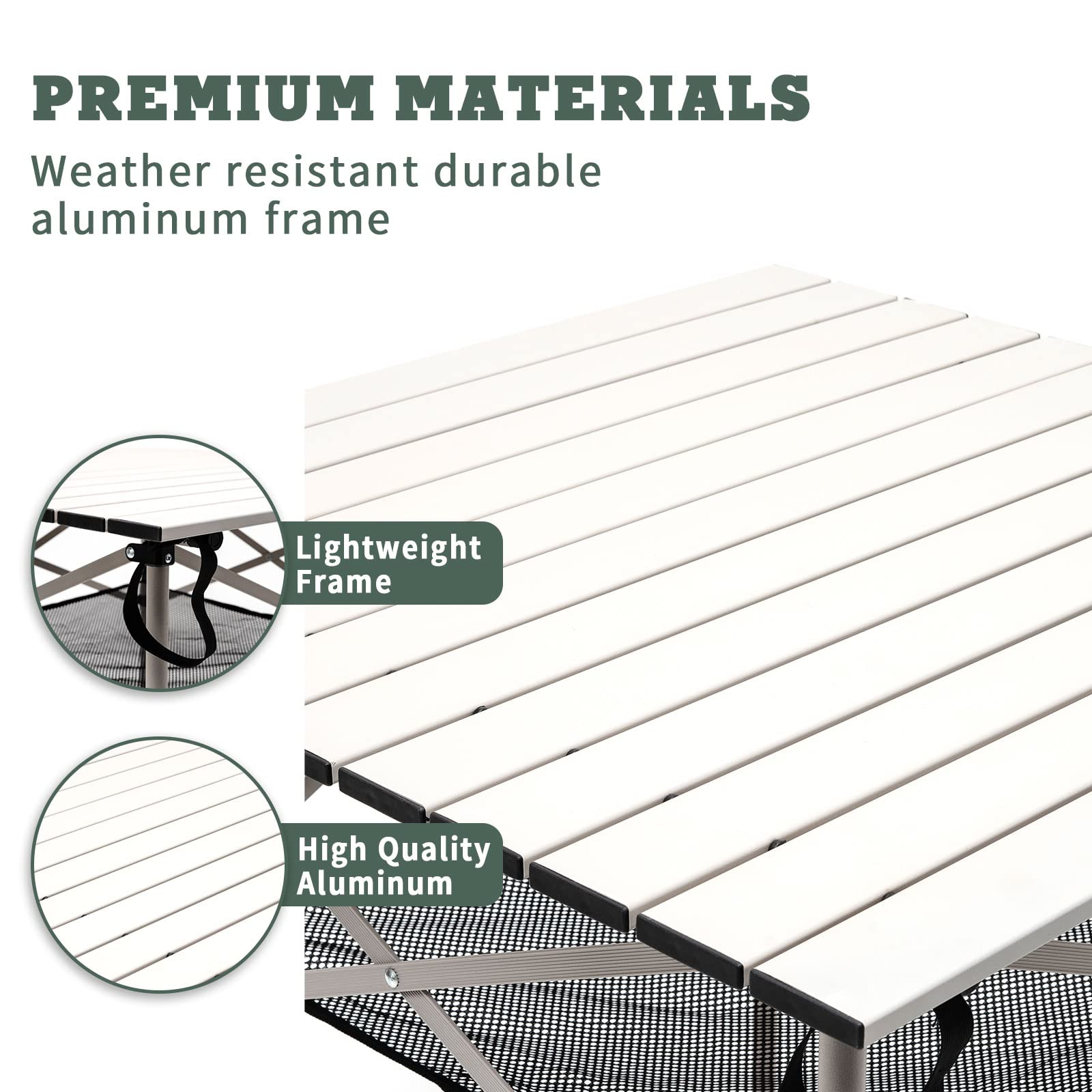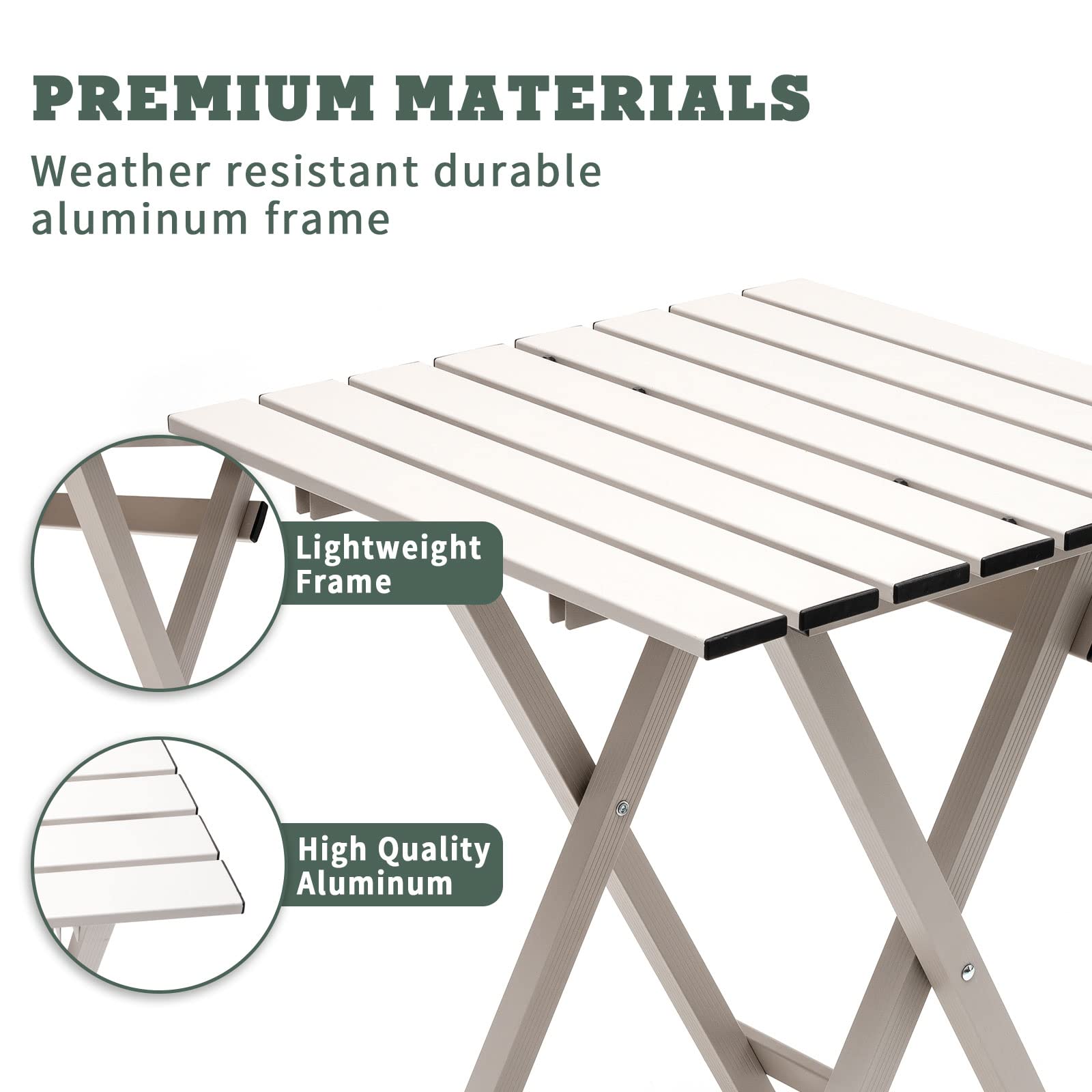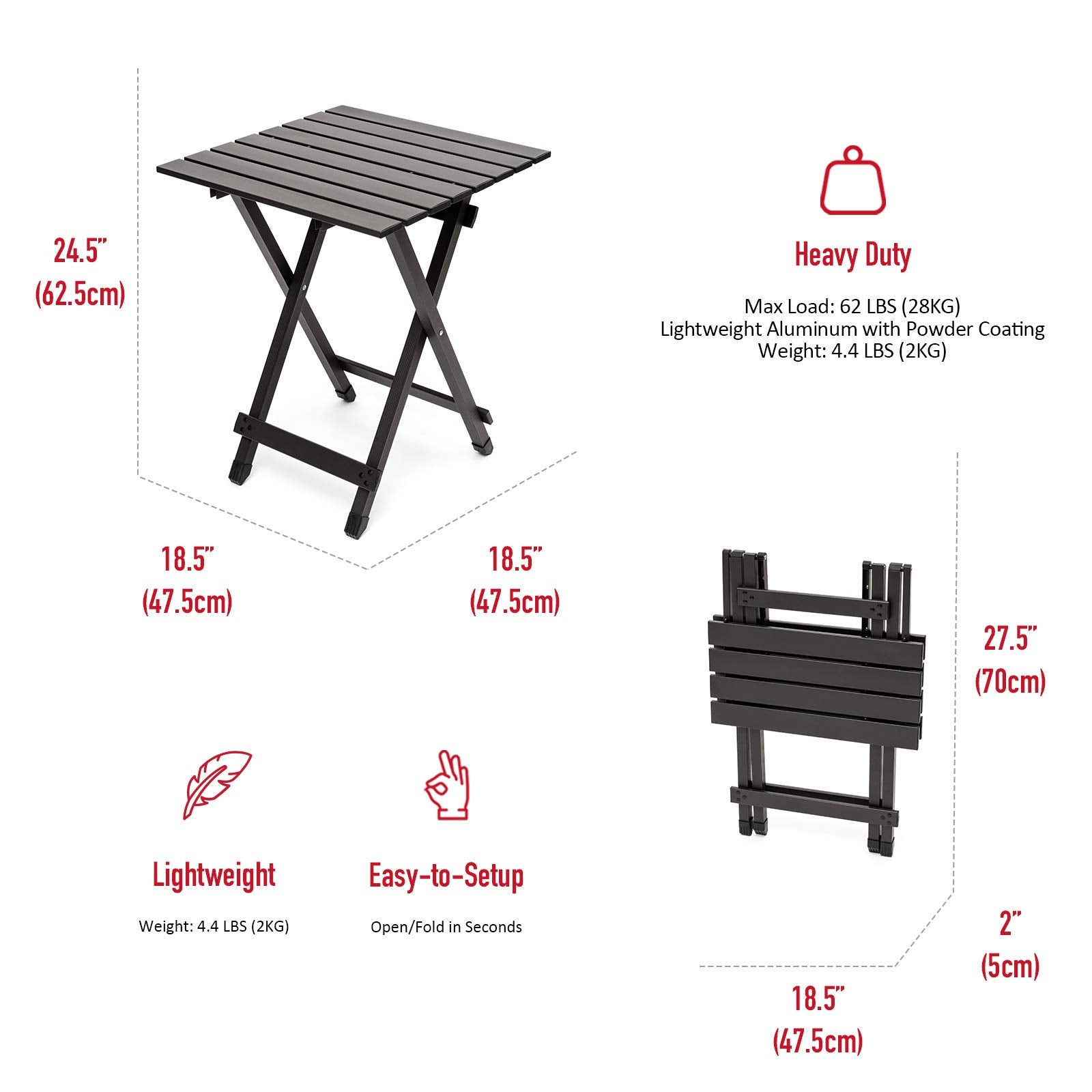 - Built to Last: The lightweight aluminum with powder coating has great strength, durability, This outdoor compact folding side table affords up to 62 LBS (28KG) weight capacity, and it is 100% waterproof for effortless clean-up.