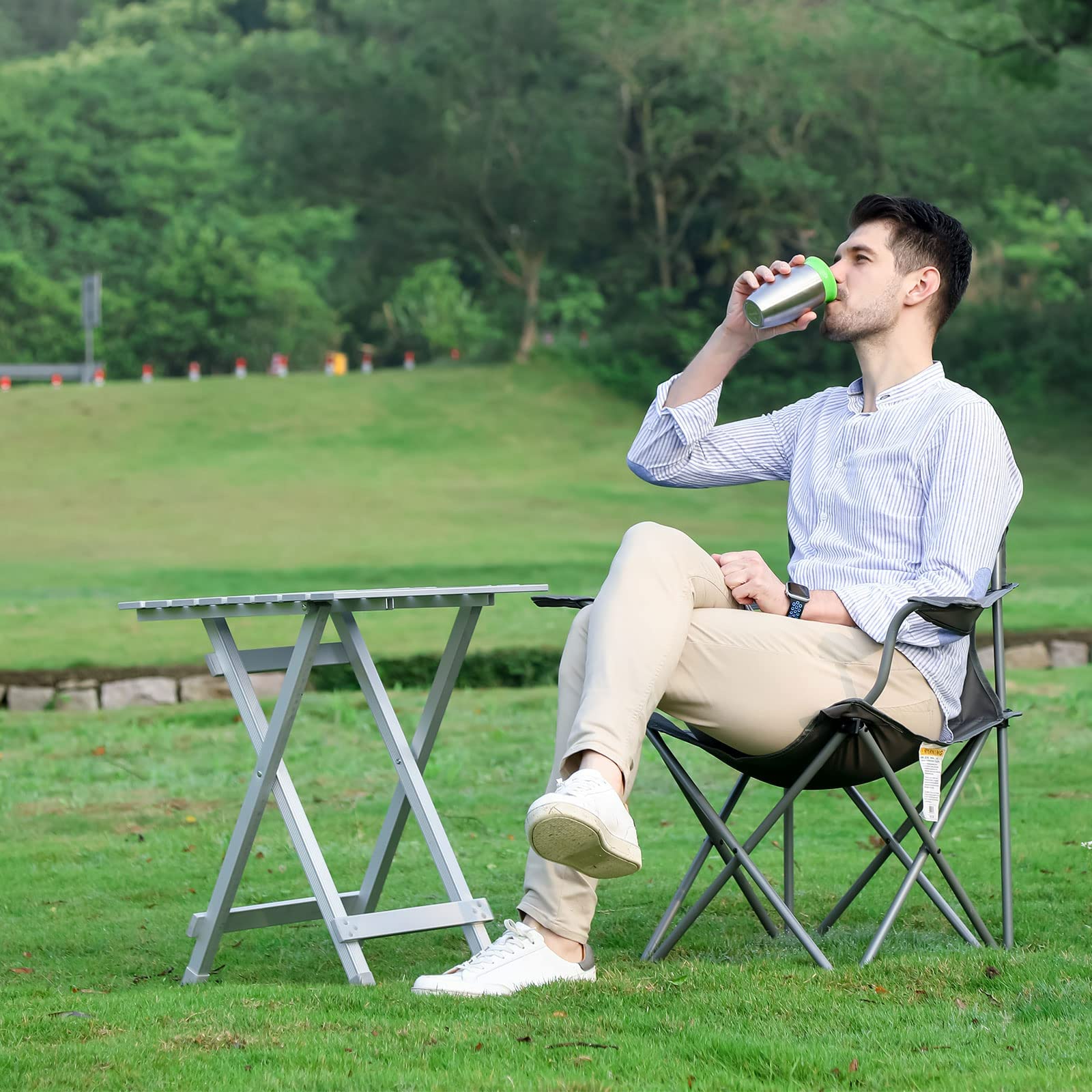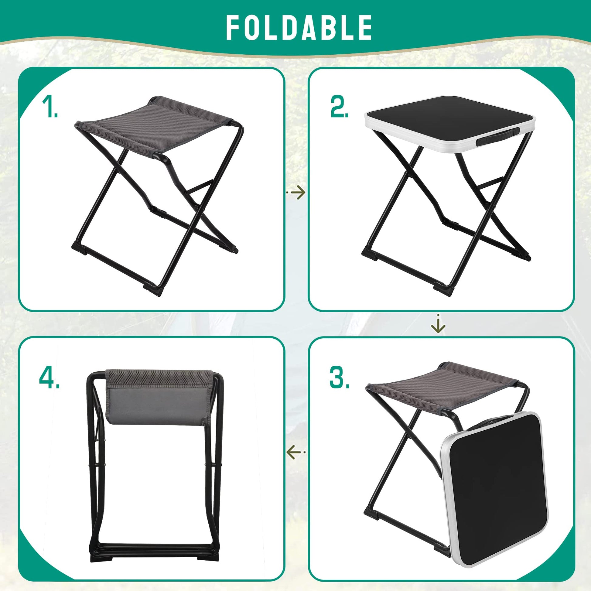 - Super Compact & Multi-Use: Easily take this portable camp table with you on-the-go camping,fishing, hiking, traveling or watching sporting events by the carry handle and this camp table can be served as dining, card-playing, and temp-laptop table on patio, BBQ, outdoor, or any other occasion. It can be used as a folding stool, folding table and folding footrest.