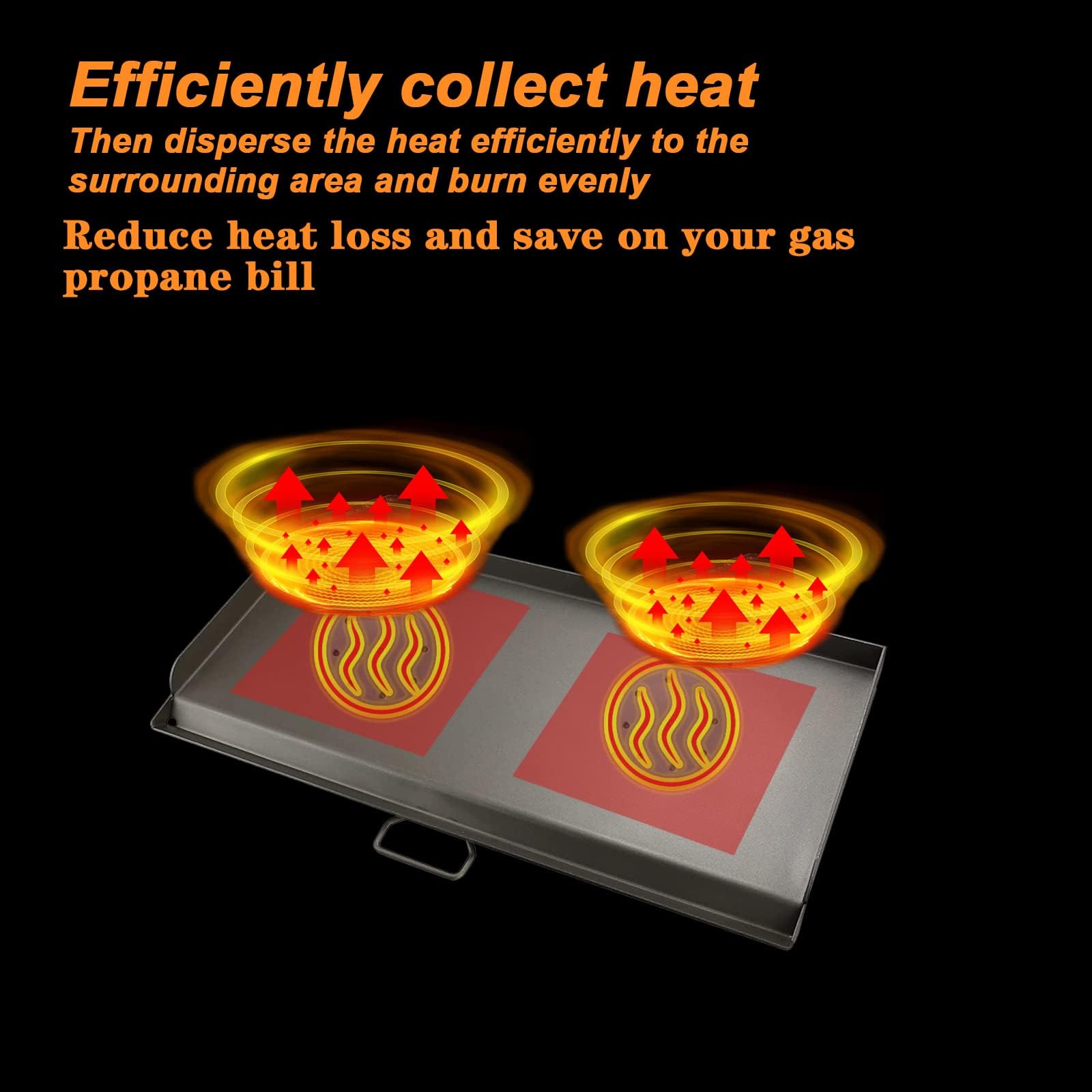 - 【Intimate Designs】►High sides prevent grease stains and food splashes ►--Grease drain, Groove design to catch and dispose grease/oil, the griddle could used in combination with Uniflasy Grease Cup, if you need Uniflasy Grease Drip Cup, just search the Asin "B08229SL86" to order【Easy to Clean】► Wipe off excess oil with a paper towel or cloth, Hand wash with mild detergent. Always dry the griddle completely with a towel to evaporate any remianing mositure before stored