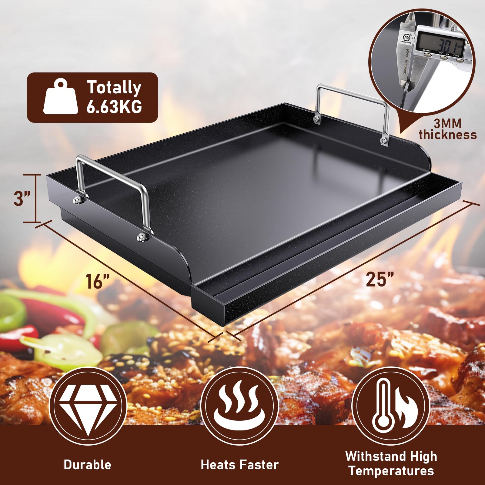 - 【Dimension】►Cooking Dimension- 14 x 16 inches. ►Total Dimension-16"x 15.3" x 2.8“ 【Package】- 1x Griddle. --Please check and compare dimensions with your grills before place order